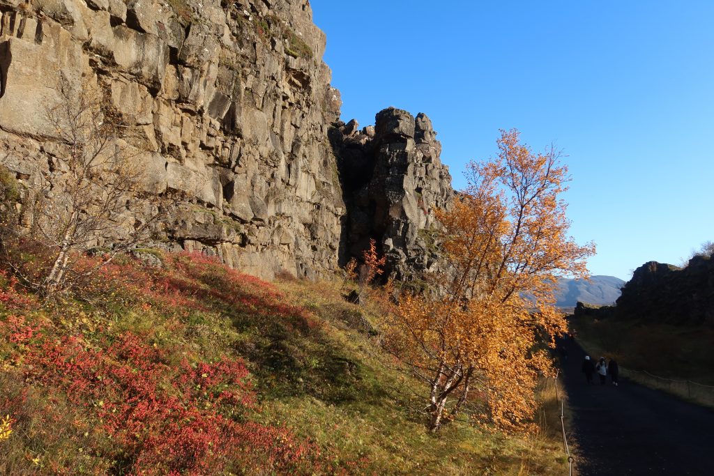 The initial part of the walk is effectively a walk along the edge of a tectonic plate. The site marks the boundary between the North American and Eurasian plates and the drift of the plates is evident in the cracks and faults in the rocks around. For locals, it is also evidenced by frequent earthquakes. This fact alone perhaps makes it a surprising place to find Iceland’s supreme legislative and judicial authority. This was known as the Alþingi (assembly) and was located at Þingvellir from its establishment in 930 until 1271.