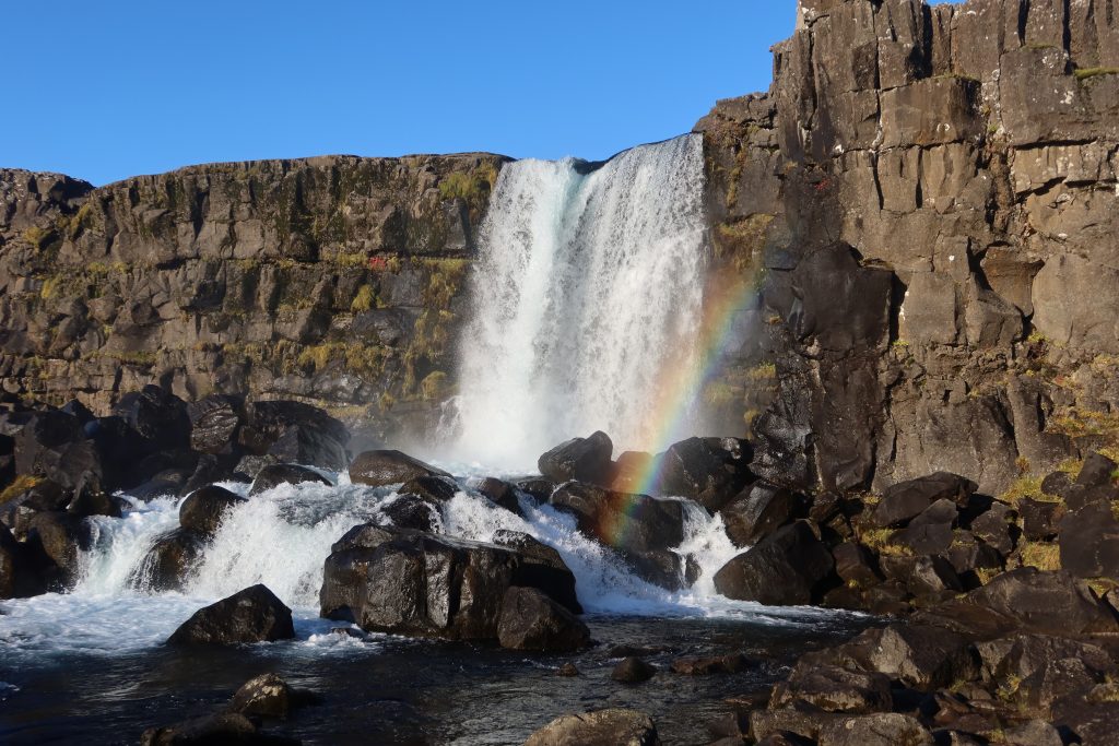 Today we had a chance to explore further the Golden Circle. This is an area between Gulfoss and the Reykanes peninsula with a series of what might be regarded as iconic Icelandic tourist destinations. The main stops are Þingvellir National Park (pronounced with a ‘th’ – Thingvellir), Gullfoss waterfall, and the geothermal area in Haukadalur. Sometimes included in tours are other attractions like the Blue Lagoon, but these are the main sights. As a result, they can be busy, even in October!