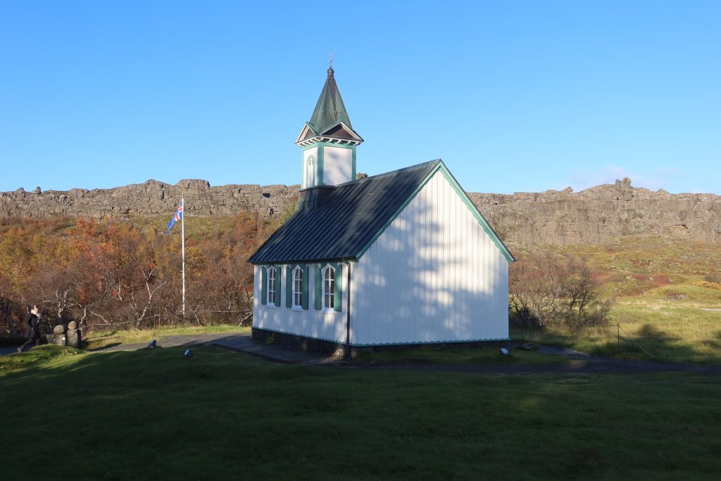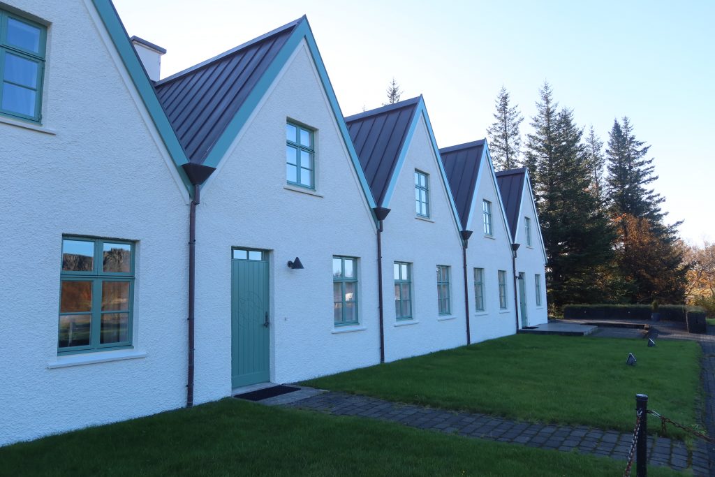 The walking loop then takes you across the river over to Þingvellir church and a row of small cottages. These are government summer houses and, given the unique status of Þingvellir, these are often used by senior government officials. In 1970 Bjarni Benediktsson was the prime minister of Iceland and he died in a fire at these houses on 10 July 1970. His wife and grandson also died in the fire. They have since been rebuilt and they are now the Prime Minister’s official summer residence.