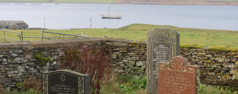 This morning we did the shortest passage so far – about a mile and a half across to an anchorage just off Egilsay. The Zodiac was hoisted into the water and we all headed ashore to walk a mile or
